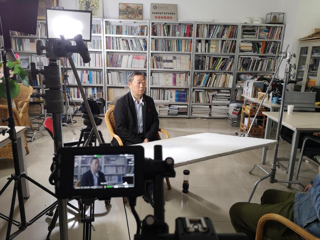 杨大禹教授接受由住房和城乡建设部村镇建设司主导,北京新影世纪影视文化发展有限公司承制的12集纪录片《中国传统建筑的智慧》摄像采访,针对中国传统古镇的类型、各自的成因和主要特征,并从族群生存、工程技术、审美理念与社会伦理等方面解读传统古镇蕴含的智慧进行解读。