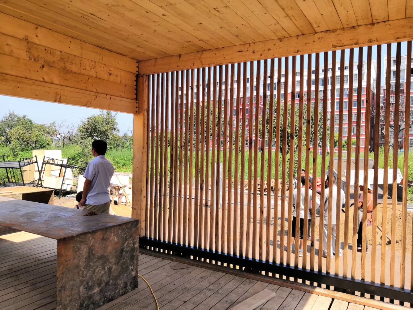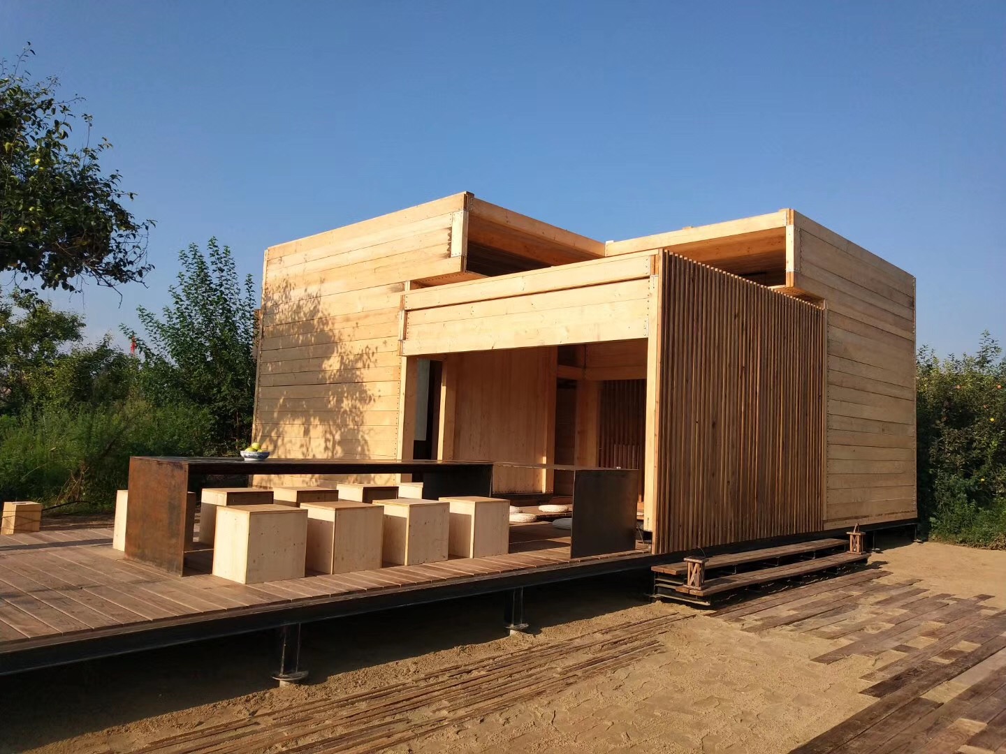 和斯洛伐克技术大学联合团队的作品“方间梨楔”,以“行到水穷处,坐看云起时”的纯粹生活理念为灵感,回归极简的空间操作手法,在梨园一隅置入极简生活体验装置。该设计以“简洁实用”为基本原则,通过变换建筑的空间组合形式,满足使用空间的可变性和使用功能的兼容性。并希望通过简洁的建筑结构与自然光线的微妙关系,寻找建筑与自然环境相映成趣的设计快乐。该建造作品在解读百年梨园的全新生活方式的同时,为探索乡村生活模式多元化创造无限可能,获得了评审团的一直好评。