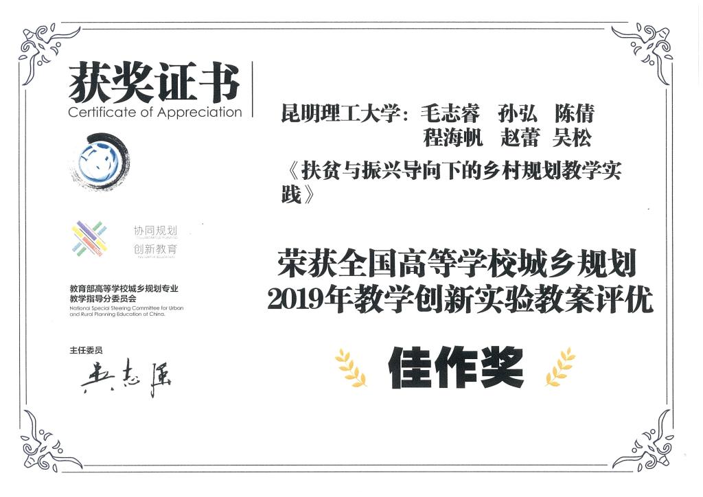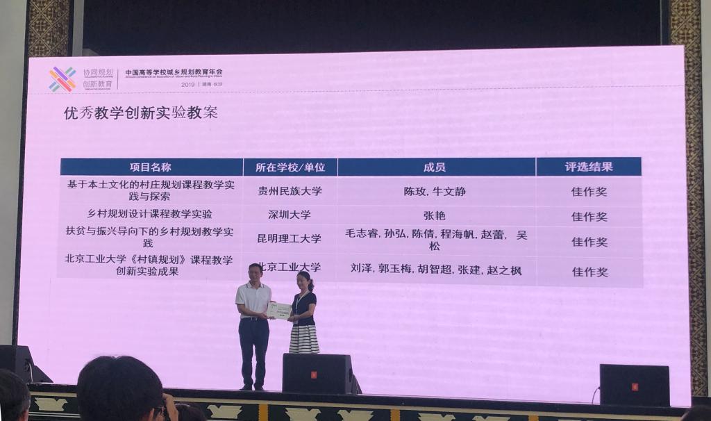 教师在本次年会中获得教学创新实验教案评优佳作奖1项,学生作业在城市设计作业评优中荣获三等奖1项。