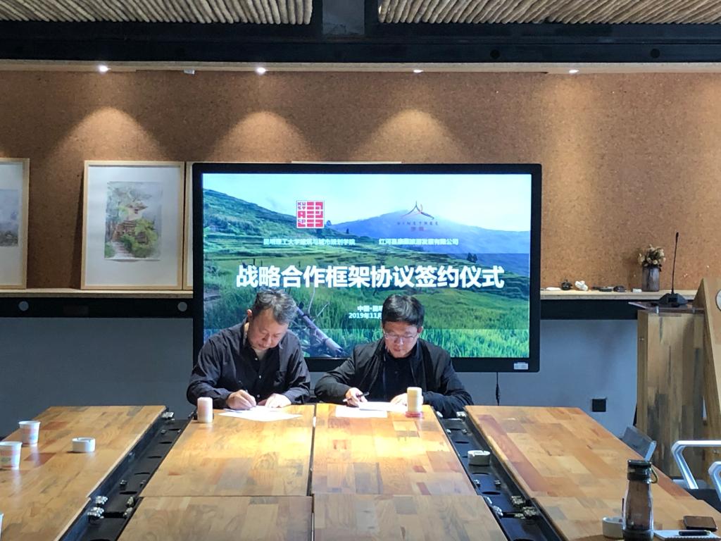 为促进云南乡土建筑再造和乡村振兴发展工作,学院与红河县康藤旅游发展有限公司于11月5日在呈贡校区建筑楼205举行了双方战略合作协议签字仪式。