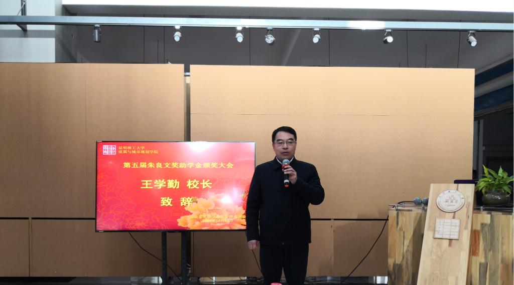 建筑楼一楼中庭举行。学校党委副书记、校长王学勤,副校长周峰越,“朱良文奖助学基金”设立人朱良文教授,学院党政领导和各系主任、支部书记、教师代表、辅导员、各专业本科学生共计120余人参加了本次颁奖大会。