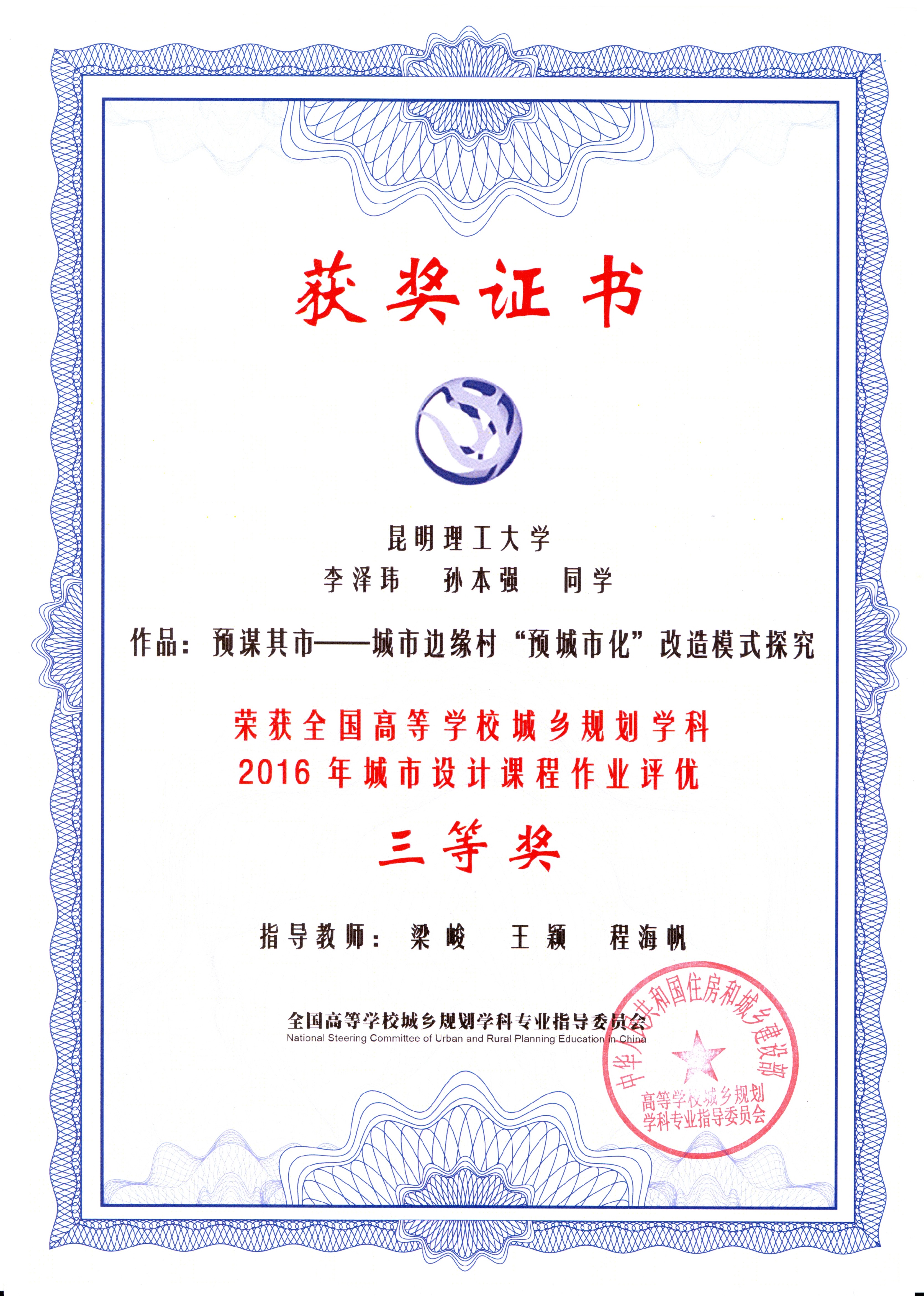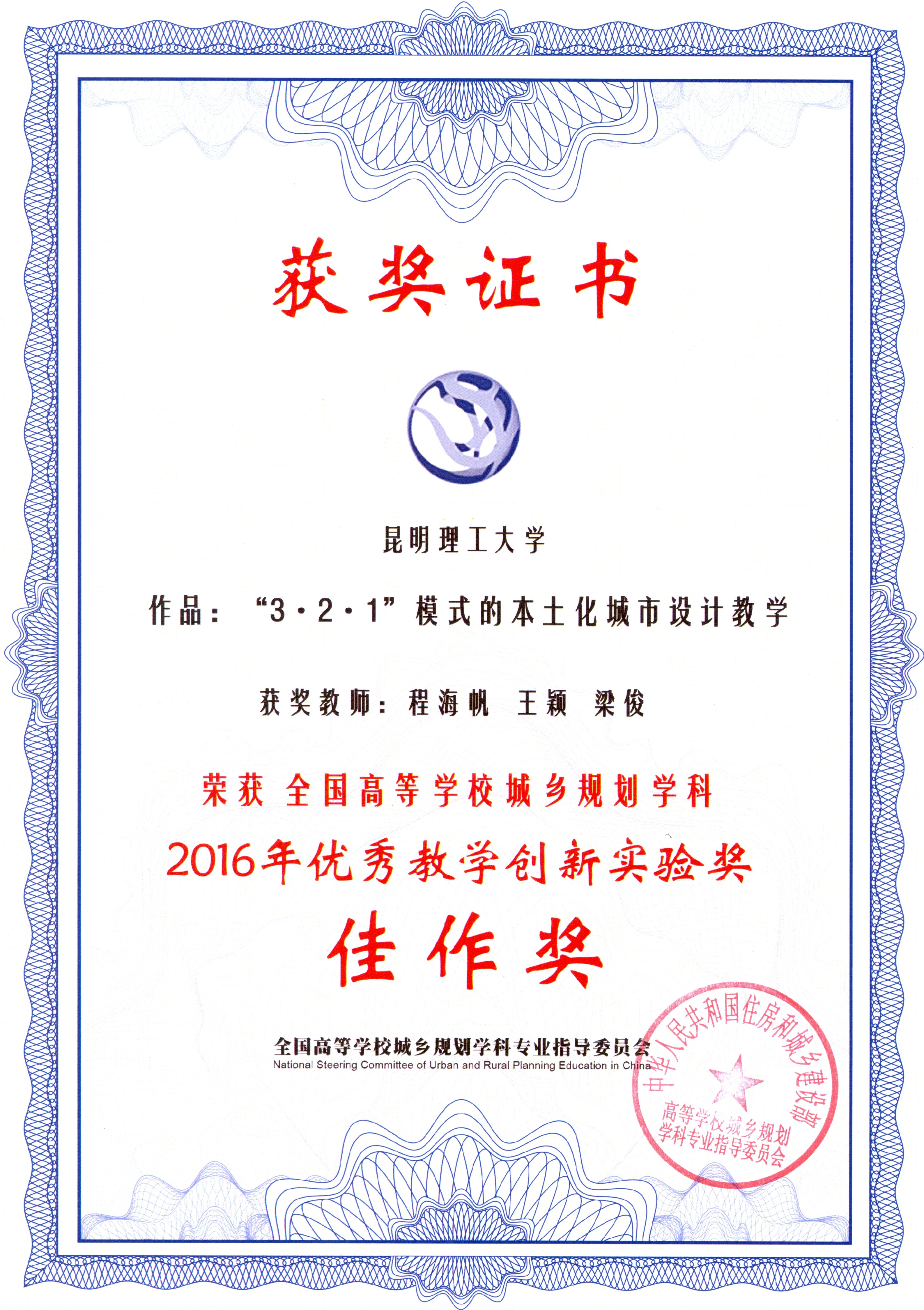 学院在本次年会相关竞赛中分别获得了全国高等学校城乡规划学科“2016年城市设计课程作业评优” 三等奖一项、“2016年优秀教学创新实验奖” 佳作奖一项、“2016年优秀教学论文奖”一项并参加了分论坛报告会交流发言。
