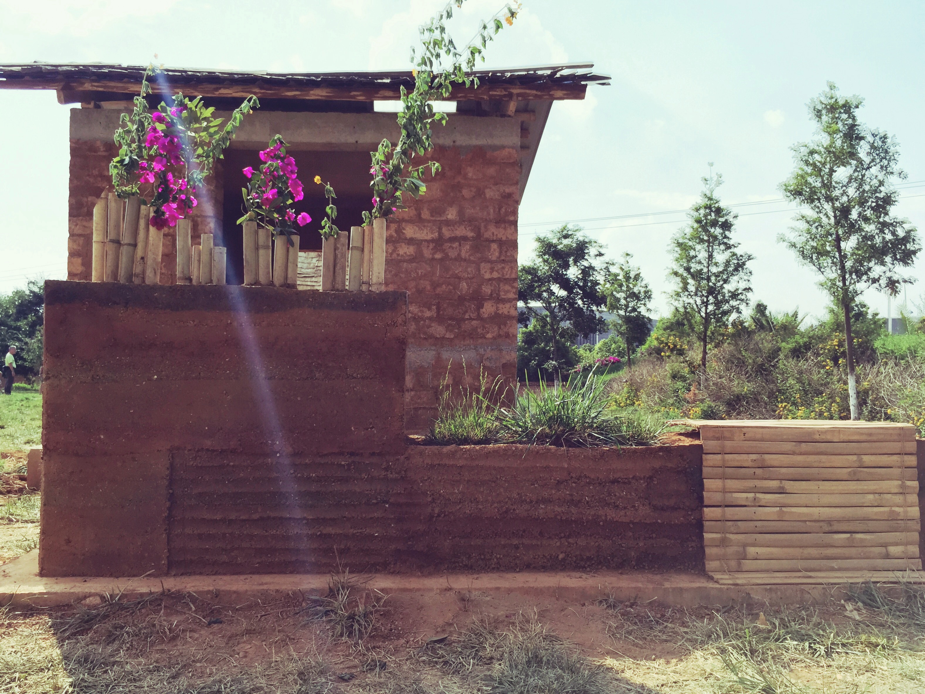 2、研讨以夯土建筑为基础的多样性建造,结合节能构造设计并完成对生土节能墙体的建造实践。