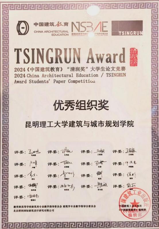 论文《逆向设计:人工智能时代下的建筑设计新流程》,(作者:许愿驰;指导老师:韦庚男副教授),荣获 2024 年“清润杯”论文竞赛优秀奖。