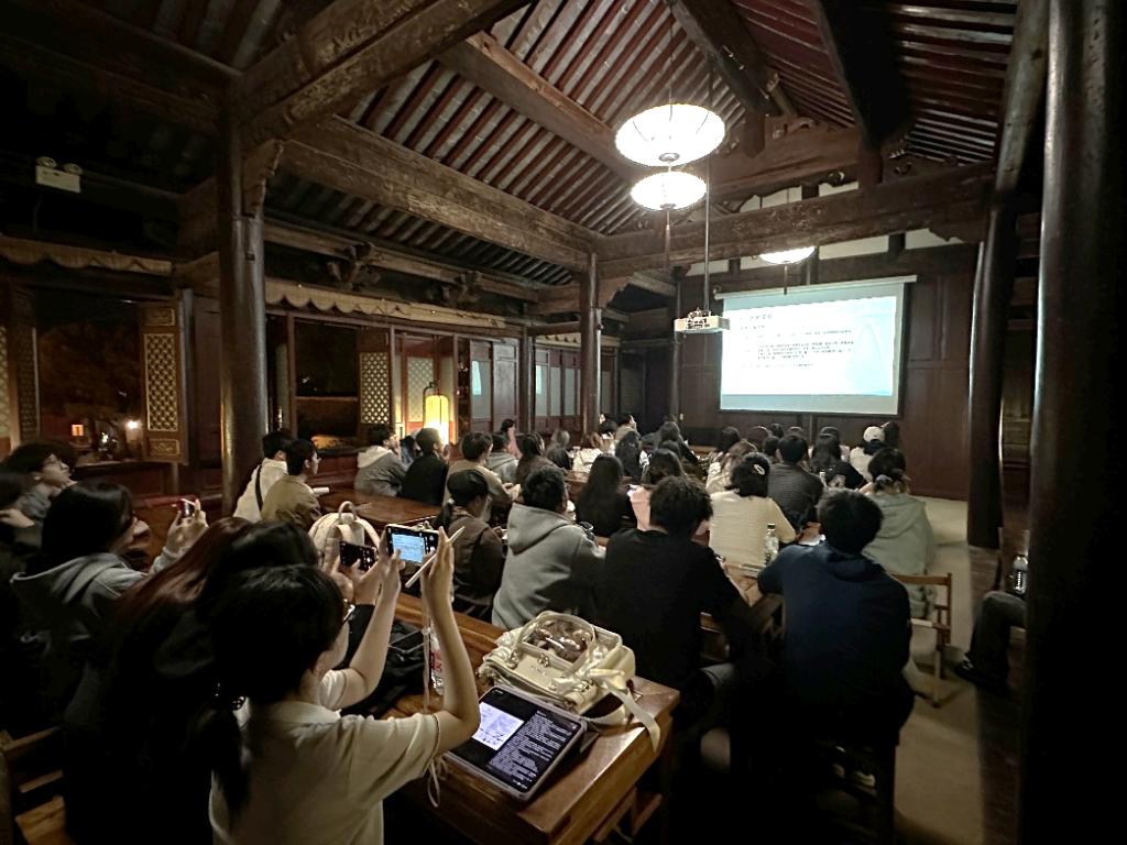 原石屏县文物管理所所长、石屏博物馆馆长朱老师分享了自己投身文保事业的感人历程。从面对故居的“脏乱差”亲力亲为打扫,到旅客量一年翻三倍;从只能申请几万块修缮资金,到争取到千万级的国保专项资金,朱老师用“脸皮厚,机会多”的幽默总结,道出了文物工作者日积月累、勤勤恳恳的忠诚,赢得了在场师生热烈的掌声。
