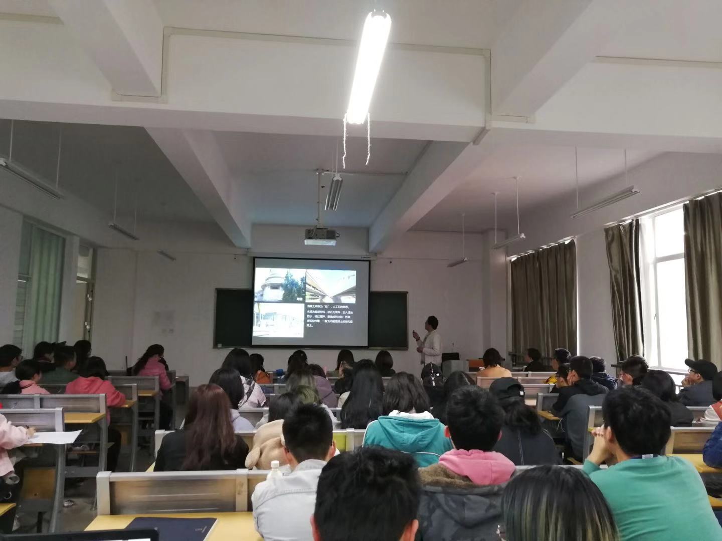 2018级建筑专业的同学们学习建筑材料与构造课程已经过了大半个学期,对各种材料、构造都有了初步的了解。为了加强同学们对建筑材料更深一步的认识,学院举办了一次建筑材料构造开放课程主题讲座。本次讲座主题为砼的故事·装饰混凝土艺术墙板,由建筑系建筑技术组李倩老师主持,由学院特邀的昆明宝贵建材有限公司的技术总监李林峰、营销总监赵静主讲。
