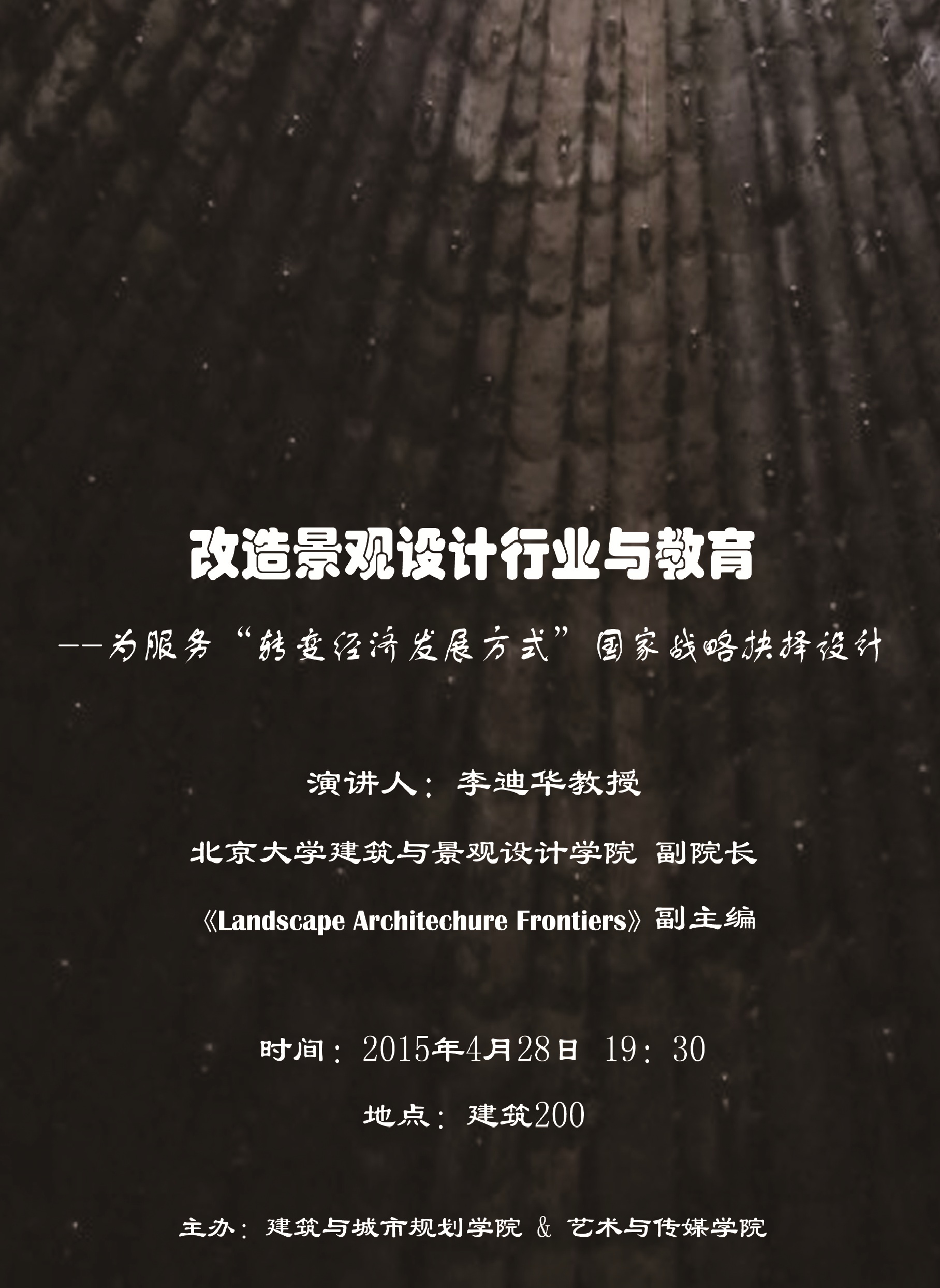讲座:改造景观设计行业与教育-为服务“转变经济发展模式”国家战略抉择设计