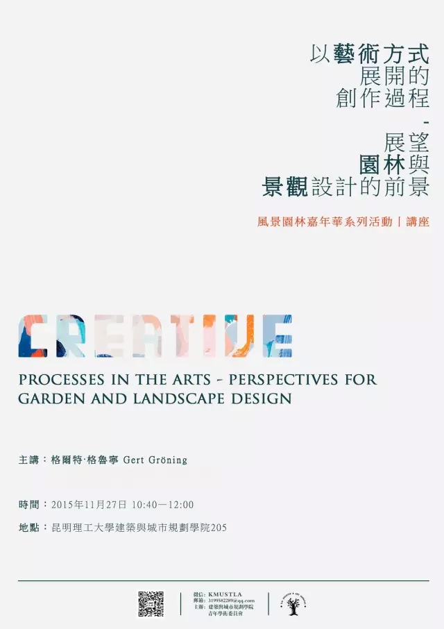 11月27日(本周五)由德国柏林艺术大学著名教授格尔特·格鲁宁教授主讲的两场讲座在建筑与规划楼举行,详情请参阅宣传海报。