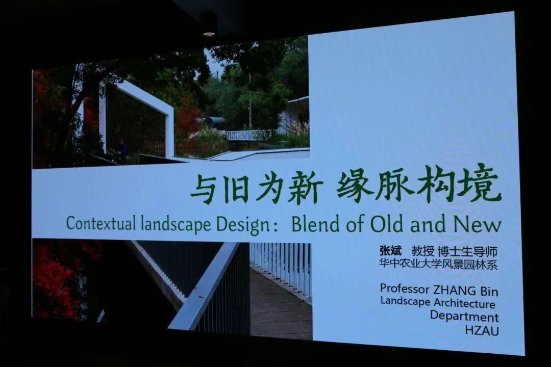 11月18日晚20:00,华中农业大学博导、全国风景园林专业学位研究生教指委委员张斌教授以《与旧为新·缘脉构境——校园空间设计三例》为题,从微观实践层面展现了风景园林的活化力量与人文温度,讲座由h漫