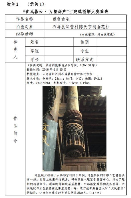(1)古建筑摄影大赛参赛报名汇总表填写;