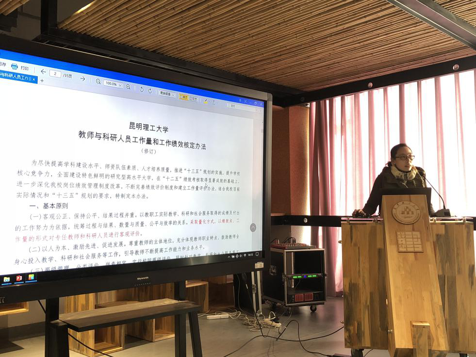 谭良斌老师就《教师与科研人员工作量和工作绩效核定办法(讨论稿)》进行了通报,就重点内容进行讲解,并倡议全体教师以此为契机,努力提升自身业务水平和服务能力,提高人才培养质量,为实现学院“十三五”规划的战略目标贡献力量。